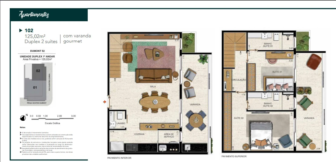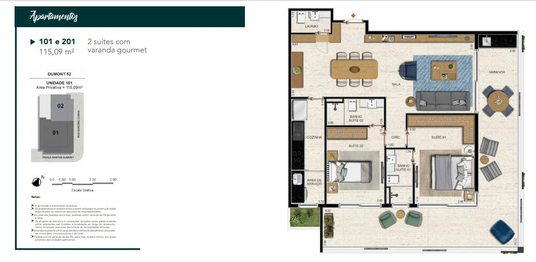 5 Unidades, Apartamentos de 2 suítes com varanda gourmet 115m² até 125m².
